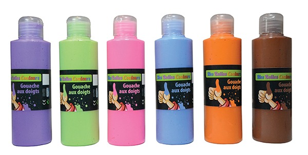 LOT DE 6 FLACONS DE 250ML DE GOUACHE AU DOIGT COULEURS COMPLEMENTAIRES