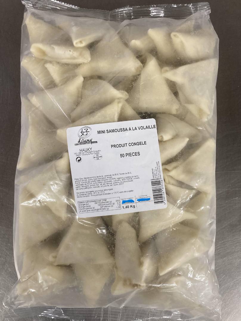 - MINI SAMOUSSA A LA VOLAILLE CONGELES x 50 PIECES (Poids net: 1.400kg) Lot: 23/01/2024 et DDM:23/07/2025