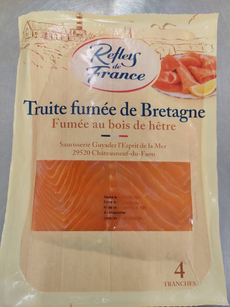 - N) de lot et DLC au jet d'encre sur le devant du produit estampille sanitaire: FR 29.027.500 CE au dos du produit