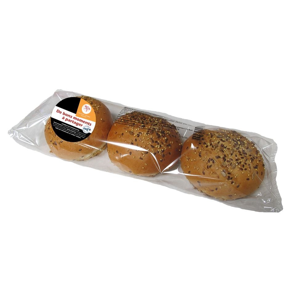 - PAIN BURGER BRIOCHE 85G FINITION GRAINES EN SACHET DE 3