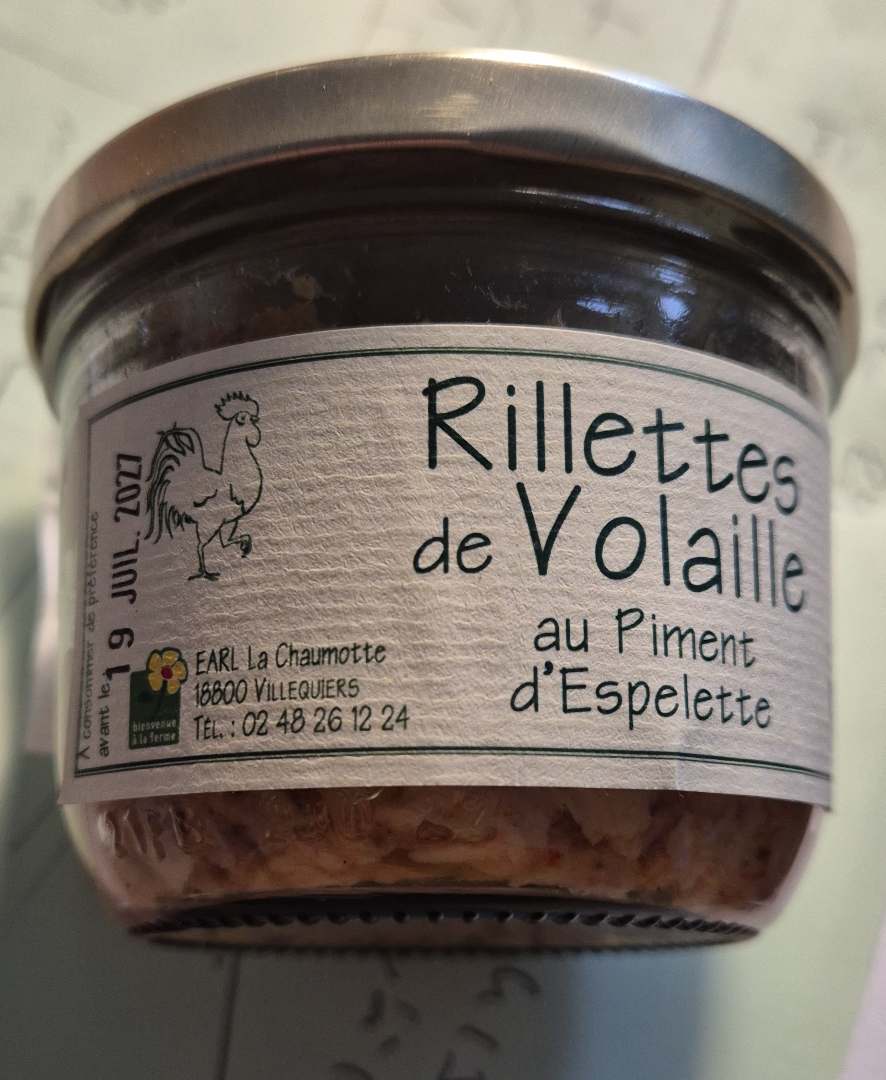 Rillettes de Volailles: Nature et piment; Terrines de foie de volailles : Nature; raisins; poivre vert; pruneaux; romarin; 5 baies; terrines foie gras et Pintade braisée