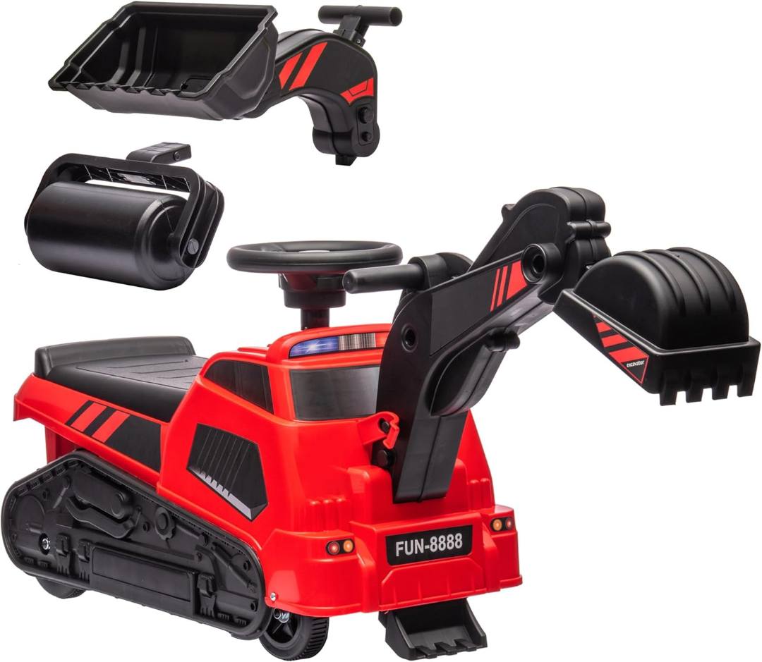 - HOMCOM Tracteur tractopelle Enfant Porteur dès 18 Mois avec excavatrice, Rouleau compresseur et Pelle, Fonction Musique PP modèle Rouge SKU 370-299V00RD et modèle jaune 370-299V00YL