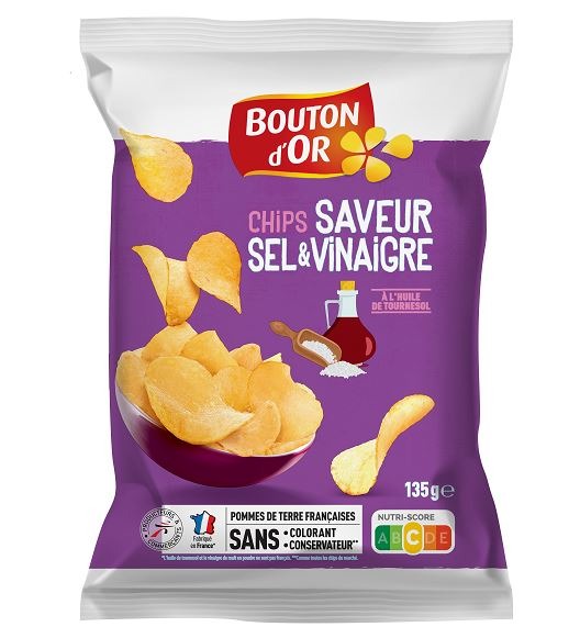 - Chips saveur sel et vinaigre 135g BOUTON D'OR