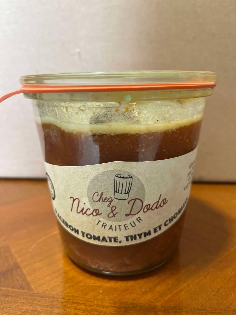- Plat cuisiné : paleron de bœuf en sauce tomate , thym & dés de chorizo