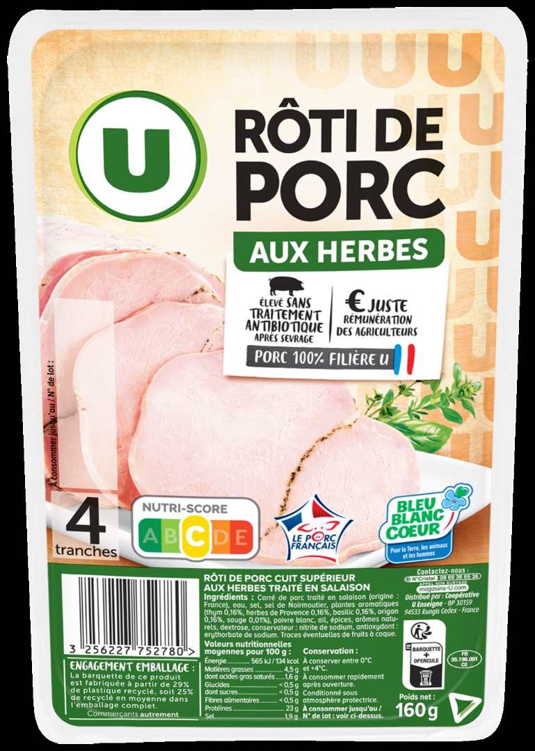 - Roti de porc herbes Bleu Blanc Coeur U 4 tranches 160g