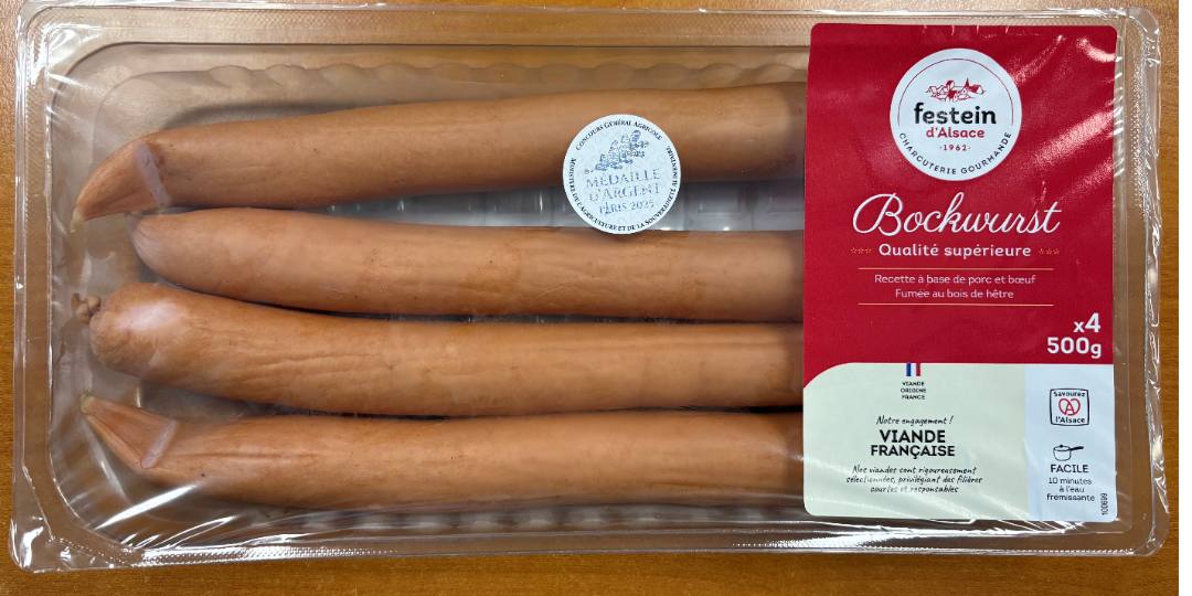 - BOCKWURST QUALITE SUPERIEURE X4 - 500G - MARQUE FESTEIN D'ALSACE