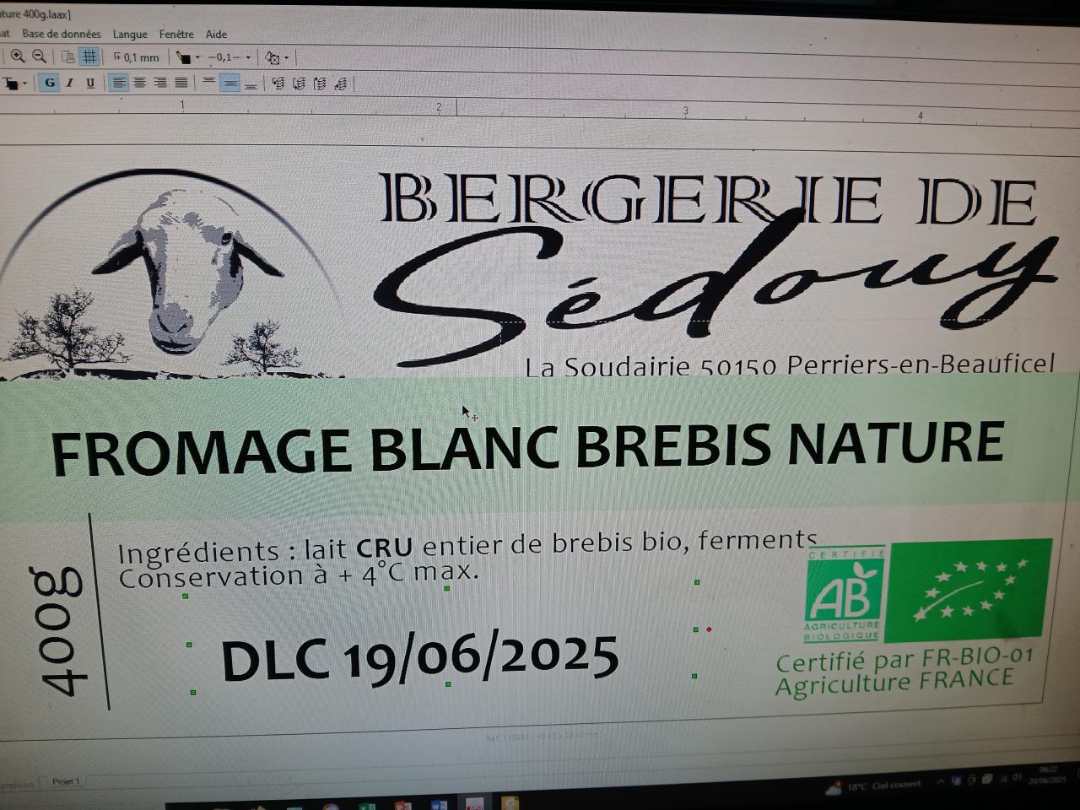 fromage blanc de brebis pot de 400g de la bergerie de sedouy dlc 19/06/25 fromage lactique de brebis frais fabriqués le 3/06/25