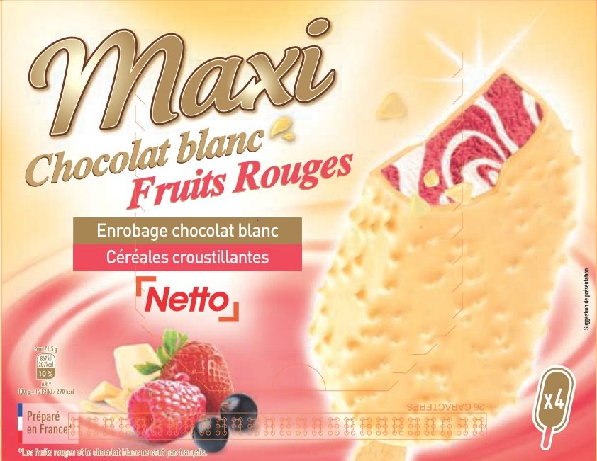 - NETTO MAXI BATONNET 4x100mL CHOCOLAT BLANC - FRUITS