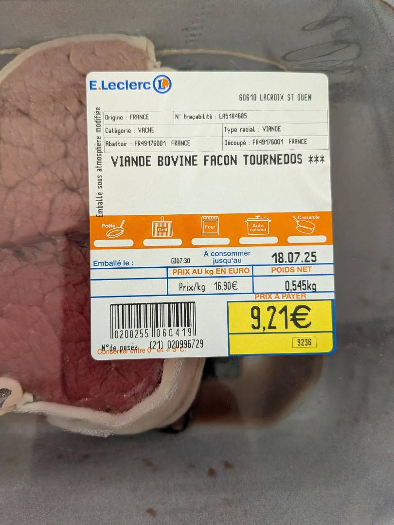 - N° traçabilité : LA5184685 Abattoir : FR49176001 Produits vendus le 15/07/2025 uniquement entre 12h00 et 20h00