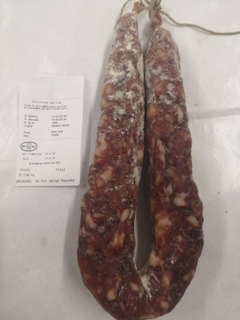 Saucisse perche, saucisson sec, saucisse de foie, chorizo (porc, boeuf et mixte porc boeuf)