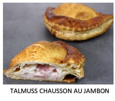 - FEUILLETE VOLAILLE CHAMPIGNONS 3 348 700 069 284 // FEUILLETE AUX 2 SAUMONS 3 348 700 063 039 // FEUILLETE CHEVRE 3 348 700 063 008 // FEUILLETE CHEVRE EPINARD 3 348 700 069 215 // TALMUSS CHAUSSON AU JAMBON 3 348 700 069 178