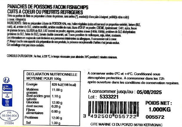 Identification des produits GTIN Lot Date 3492500055722 5209595 Date limite de consommation 14/08/2025 - Conditionnements