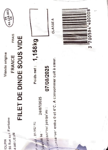 Identification des produits GTIN Lot Date 3435660649714 25202112 Date limite de consommation 07/08/2025 - Conditionnements