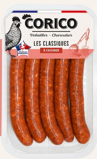 - Barquette de 10 merguez de volaille (Neutre) Barquette de 10 merguez de dinde (ADNR) Barquette de 5 merguez de volaille (ADNR) Barquette de 5 merguez de volaille (CORICO)