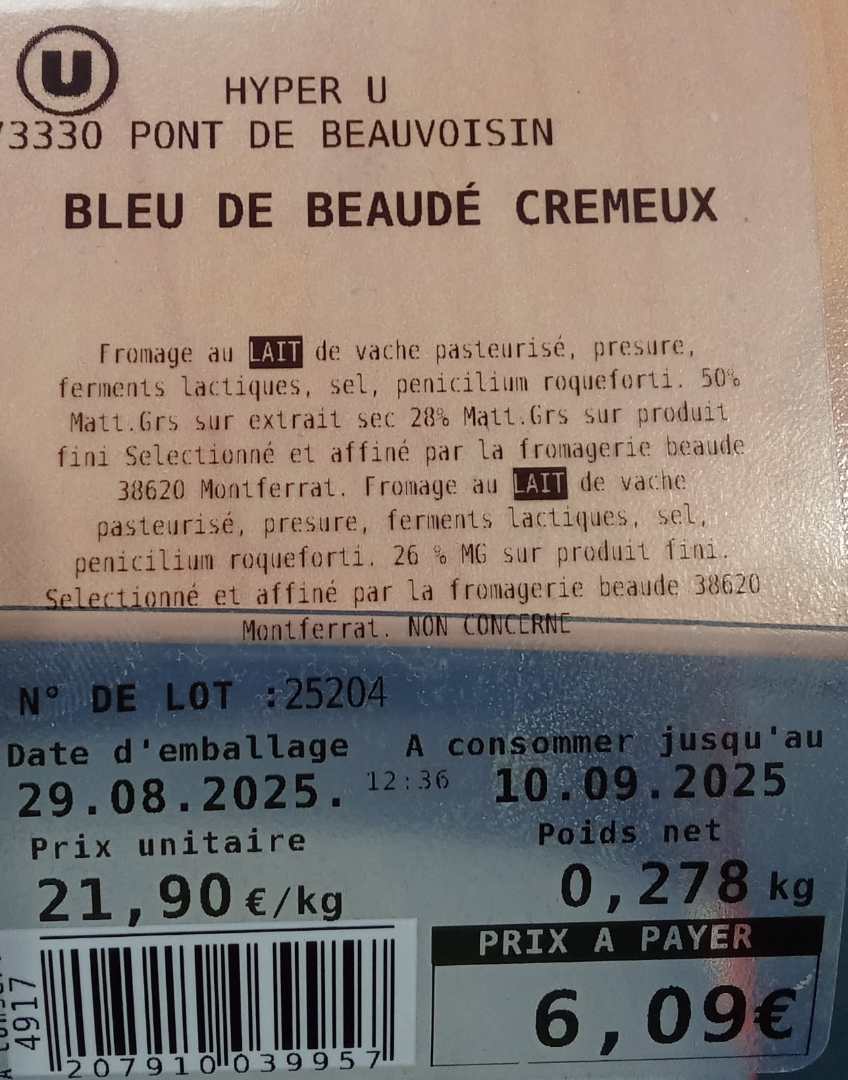 - Bleu de Beaude cremeux vendu en fromage coupe dans l'Hyper U Pont de Beauvoisin
