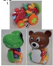 - Contenant en plastique contenant des blocs de constructions de différentes couleurs