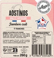 - JAMBON CUIT SUPERIEUR AVEC COUENNE AOSTINOS VPF 4 TRANCHES 260G