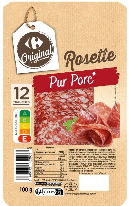 - ROSETTE PUR PORC - 12 TRANCHES - 100G - CARREFOUR ORIGINAL
