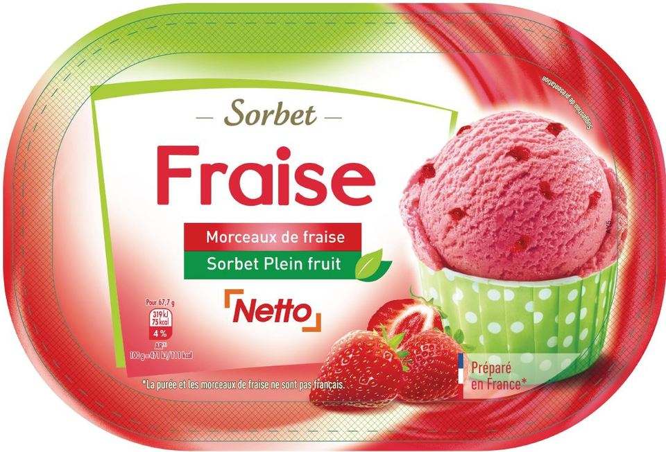 - NETTO 1L FRAISE SORBET (PLEIN FRUIT)