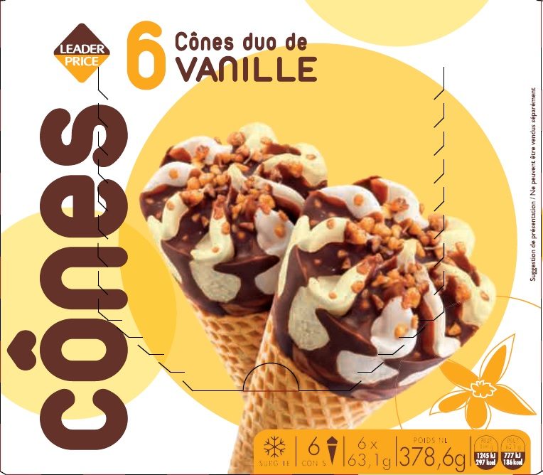 - 6 cônes duo vanille 378,6g / 660mL Leader Price - EAN: 3263859890216
