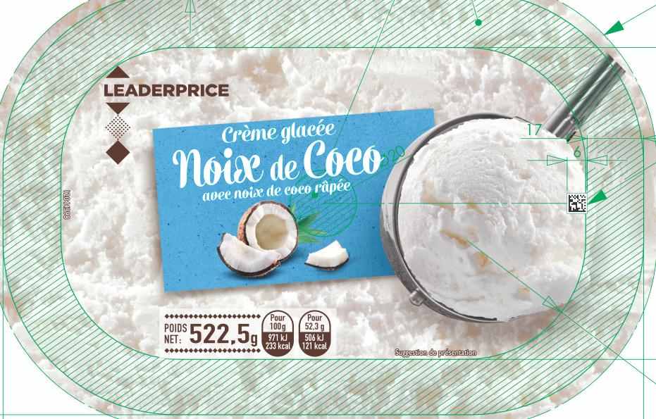 Crème glacée noix de coco avec noix de coco râpée 522,5g - Leader Price