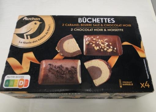 - AUCHAN BUCHETTE NOISETTES CHOCO ET CHOCOLAT CARAMEL X4 310G
