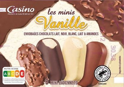 - Mini bâtonnets vanille enrobage 4 chocolats x8 – 259g CASINO Mini bâtonnets vanille enrobages sorbets fruits rouges ou fruits jaunes x8 – 275,5g CASINO