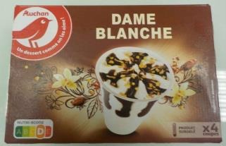 Identification des produits GTIN Lot Date 3596710276738 AUCHAN COUPE DAME BLANCHE x4 286G 02120 Date de durabilité minimale 20/01/2022 3596710276738 AUCHAN COUPE DAME BLANCHE x4 286G 13520 Date de durabilité minimale 14/05/2022 3596710276738 AUCHAN COUPE DAME BLANCHE x4 286G 01821 Date de durabilité minimale 18/01/2023 - Conditionnements
