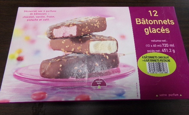 12 bâtonnets glacés - 6 bâtonnets CHOCOLAT et 6 bâtonnets PISTACHE