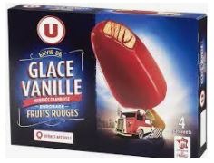 - crème brûlée U x4, macadamia U x4, vanille marb.sorbet framboise U x4