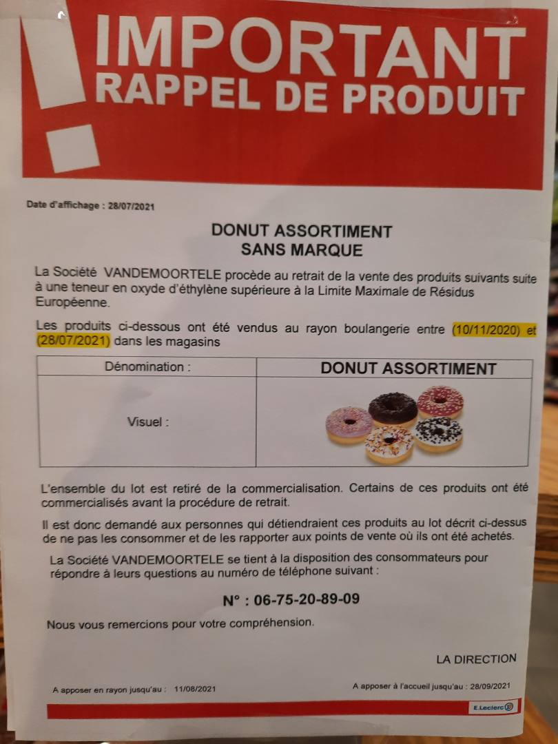 - retrait de la vente des produits suivants suite à une teneur en oxyde d’éthylène supérieure à la Limite Maximale de Résidus Européenne
