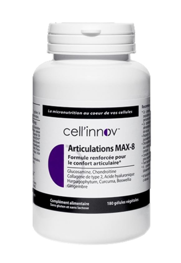 - Complément alimentaire à base de glucosamine, chondroïtine, collagène de type 2, acide hyaluronique, harpagophytum, curcuma, boswellia et gingembre.