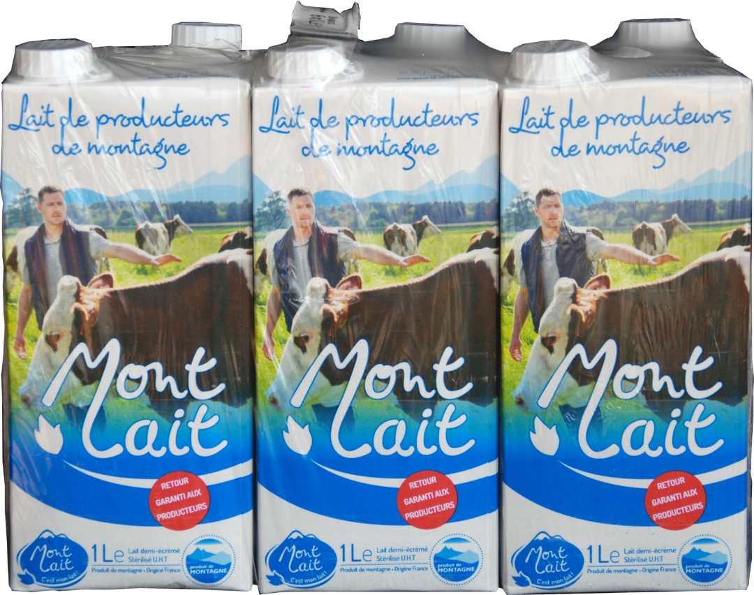 Lait demi-écrémé stérilité UHT "MONTLAIT" en Brique 1L