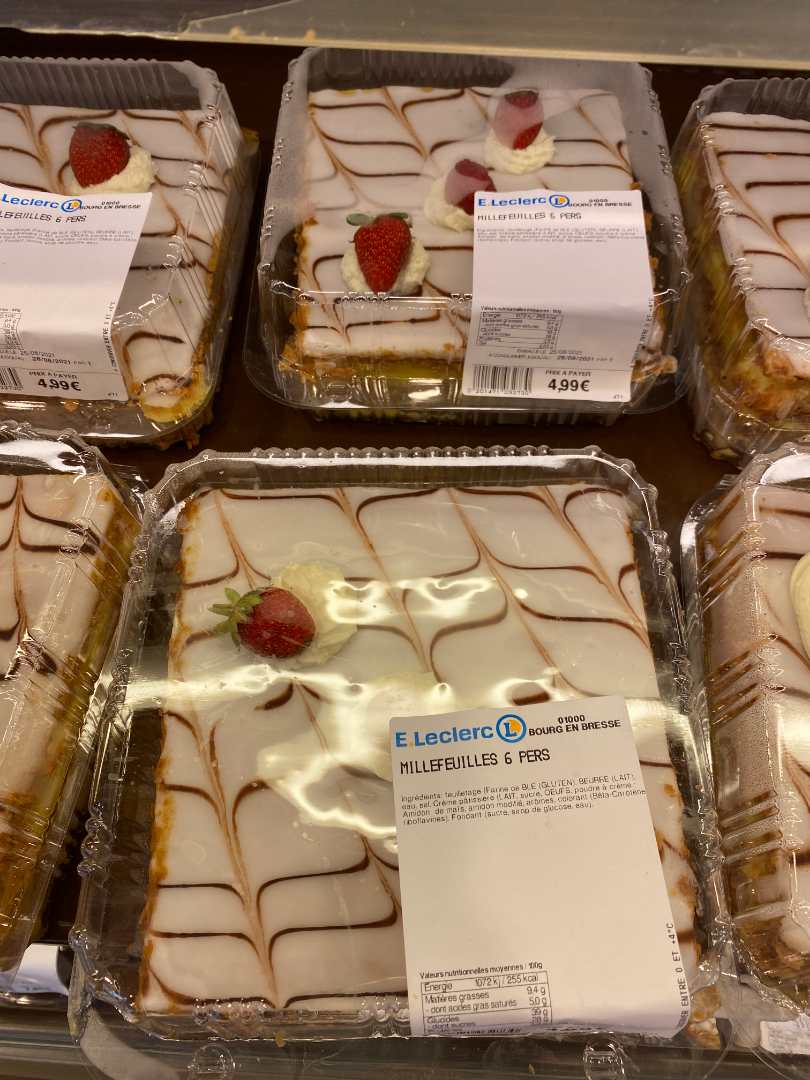 - Pâtisserie vendue au rayon libre-service : Millefeuille 6/8 pers - Millefeuille 6 pers