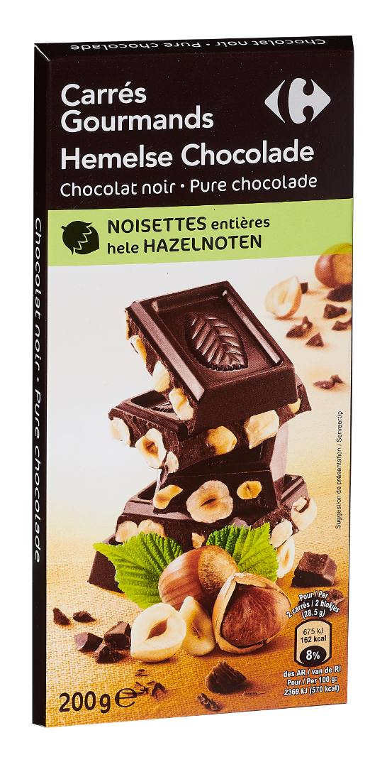 - Carrés gourmands chocolat noir noisettes entières - 200g