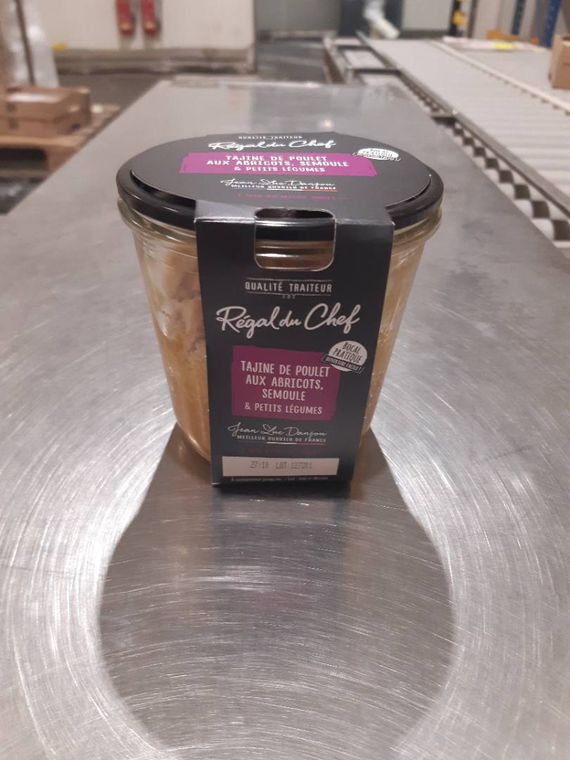 - Régal du Chef qualité traiteur : Rougail saucisses Riz 280 G contenant : bocal individuel Régal du Chef qualité traiteur : Tajine poulet aux abricots 260 G contenant : bocal individuel