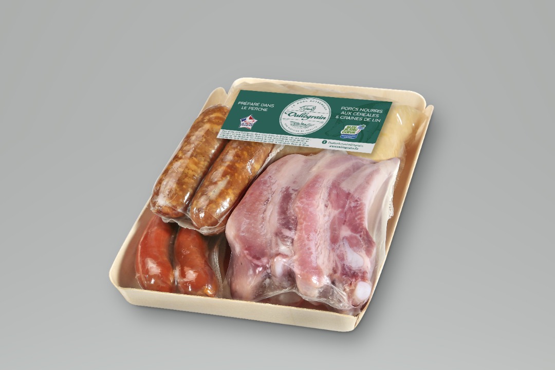 - Produits sous vide réunis dans un plateau bois sous film protecteur