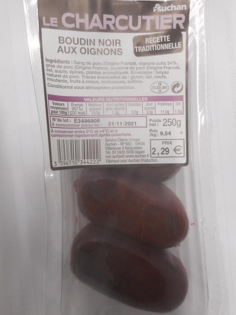 - Le produit est étiqueté Boudin noir aux oignons, mais il s'agit en réalité de boudin noir antillais (présence d'allergènes)