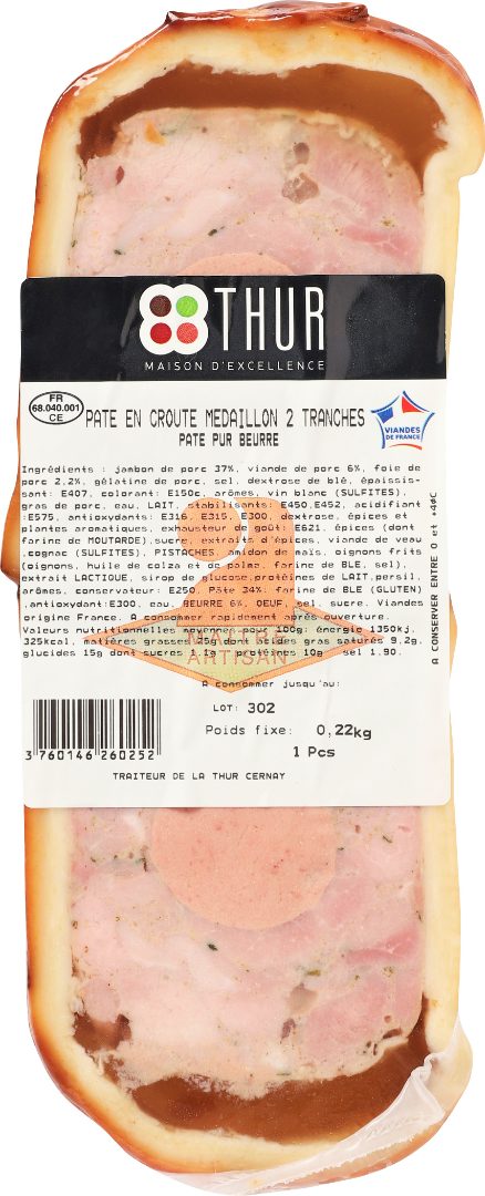 - Pâté en croûte médaillon vendu par 2 tranches.