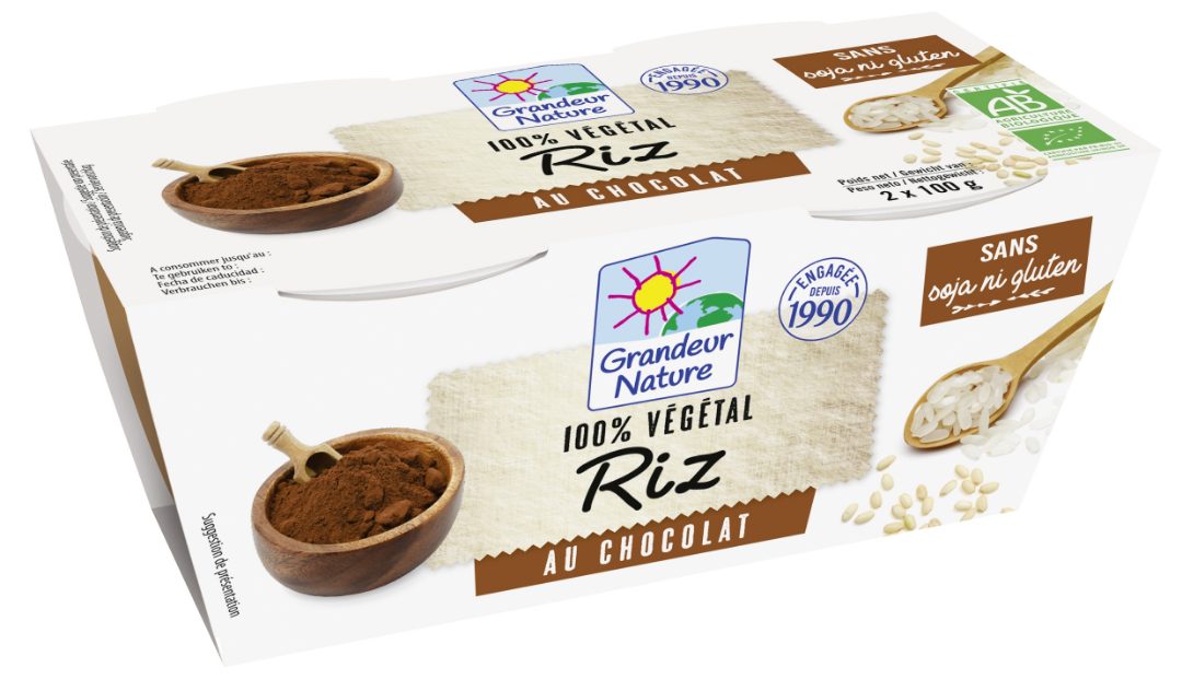 - Spécialité végétale à base de riz et de chocolat issu de l’agriculture biologique
