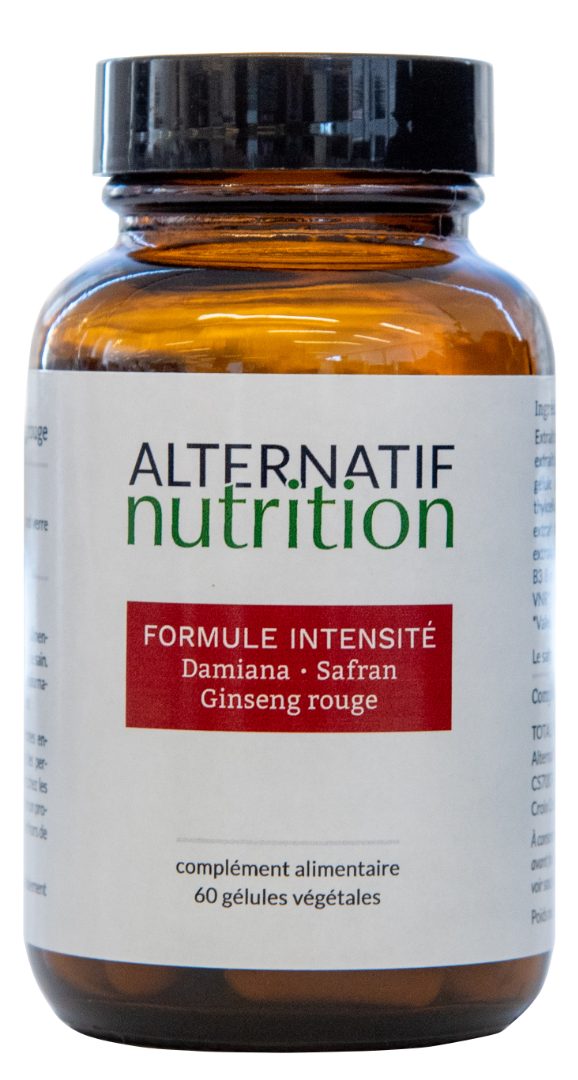 - Complément alimentaire à base de damiana, safran, ginseng rouge et bambou.