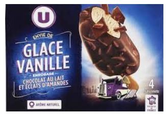 - Bâtonnets envie vanille chocolat lait amandes U x4 263g