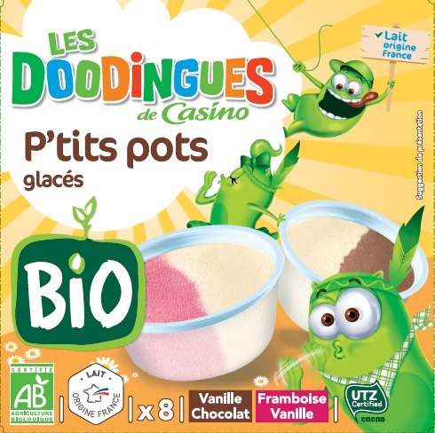 - P’tits pots glacés vanille/chocolat framboise/vanille bio x8 246g / 480ml Casino Doodingues Bio
