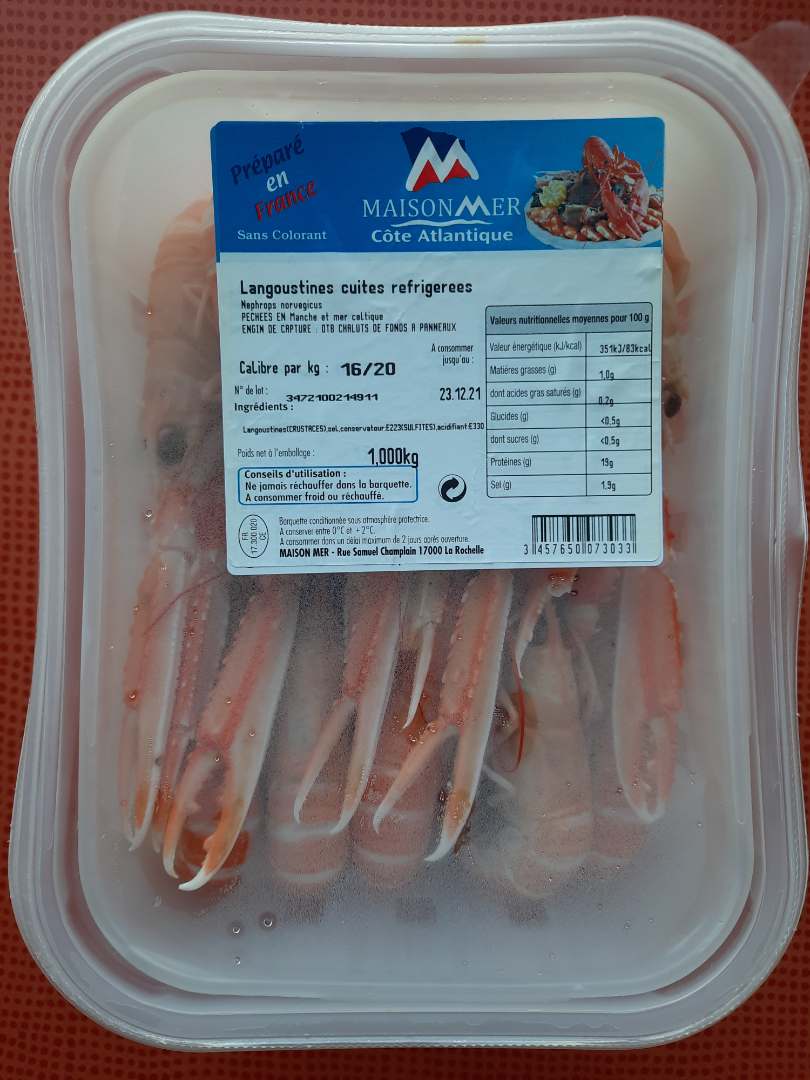 - Langoustines cuites réfrigérées 16/20 - 1kg