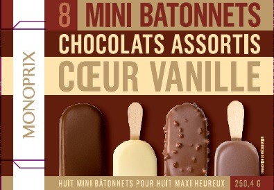 8 mini bâtonnets chocolats assortis cœur vanille 250,4g / 360ml MONOPRIX
