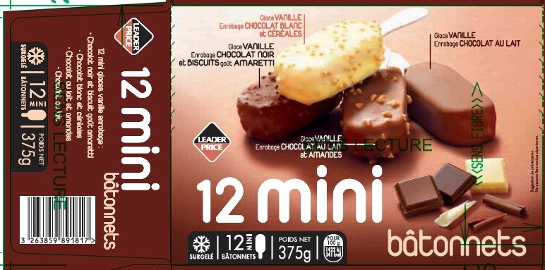 12 mini bâtonnets vanille enrobage chocolat Leader Price 375g