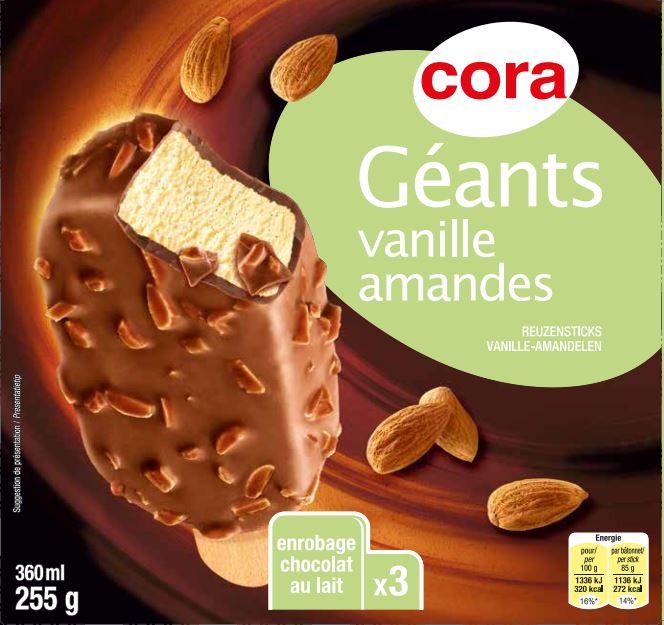 - Géants vanille / chocolat lait amandes x3 360 ml – 255 g cora