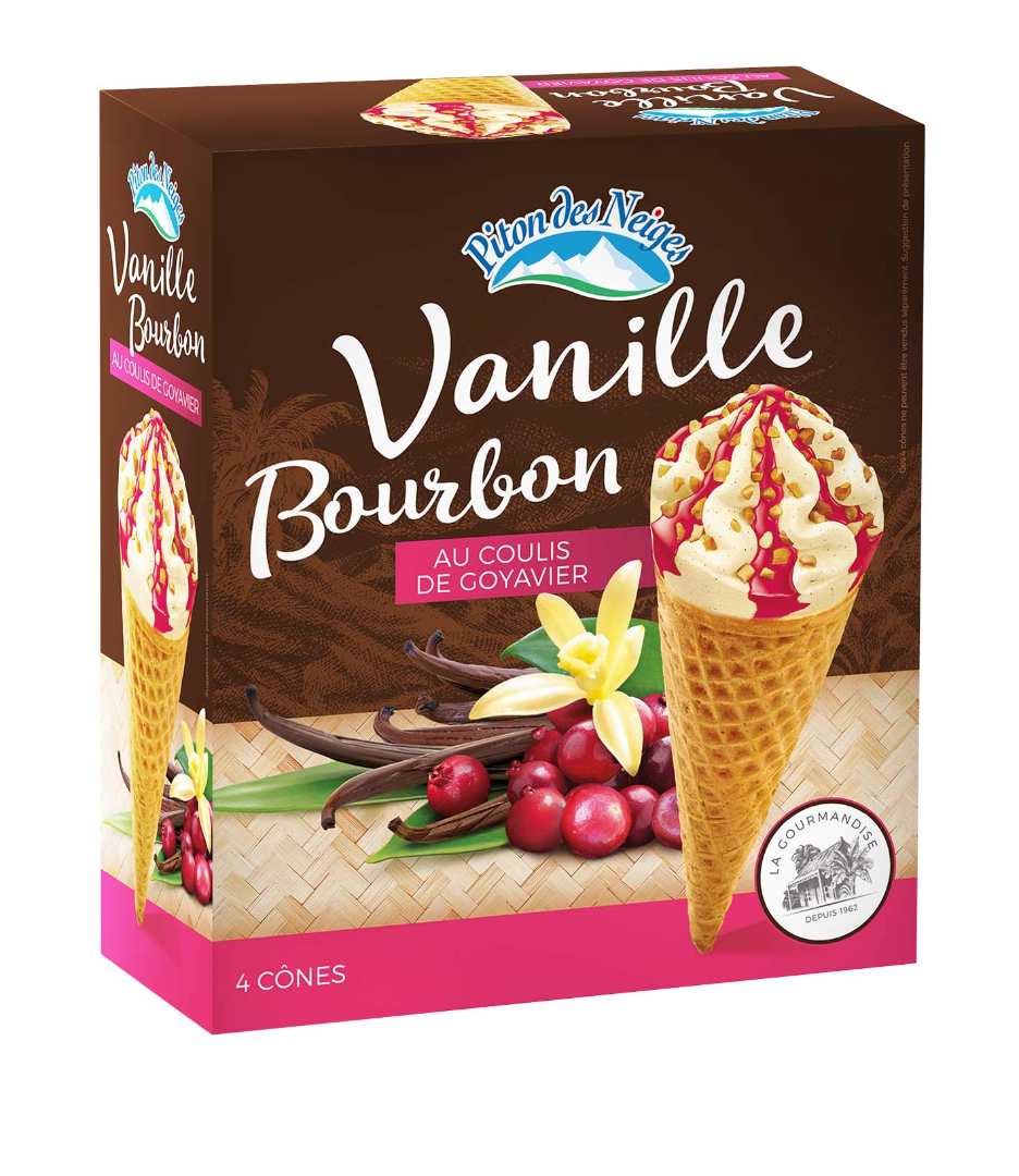 - Cônes x 4 Piton des Neiges vanille bourbon et coulis de Goyavier