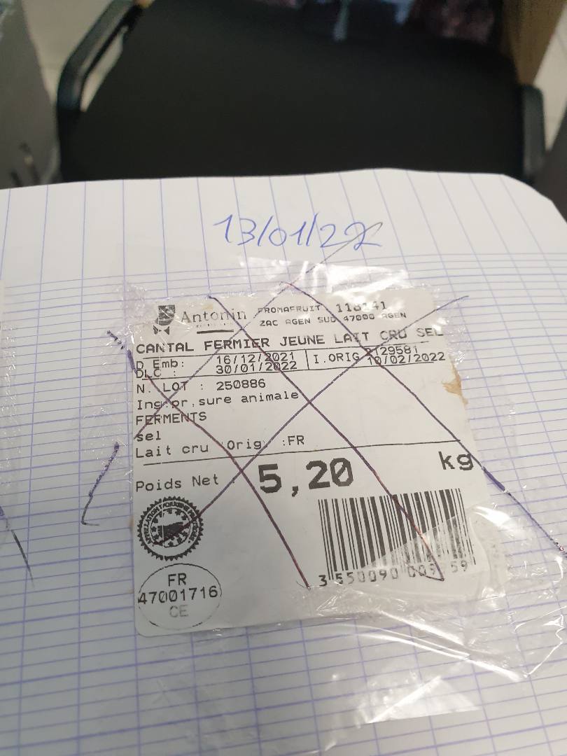 Identification des produits Lot Date 250886 Date limite de consommation entre le 13/01/2022 et le 20/01/2022 - Liste des produits