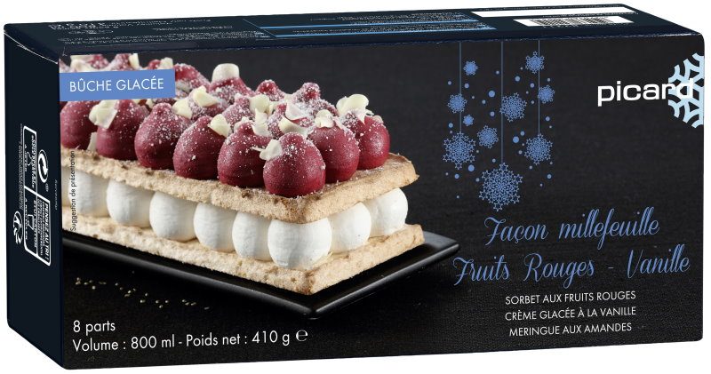 BÛCHE GLACÉE FAÇON MILLEFEUILLE FRUITS ROUGES – VANILLE